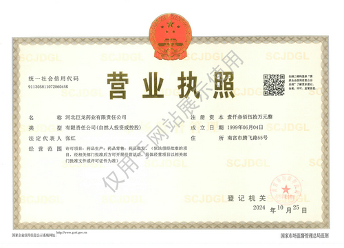 版權(quán)所有:河北巨龍藥業(yè)有限責(zé)任公司 冀ICP備19023826號(hào)-1   1733465040158507.png  冀公網(wǎng)安備13058102000452號(hào) 證書編號(hào) :(冀)-非經(jīng)營(yíng)性-XXXX-XXXX